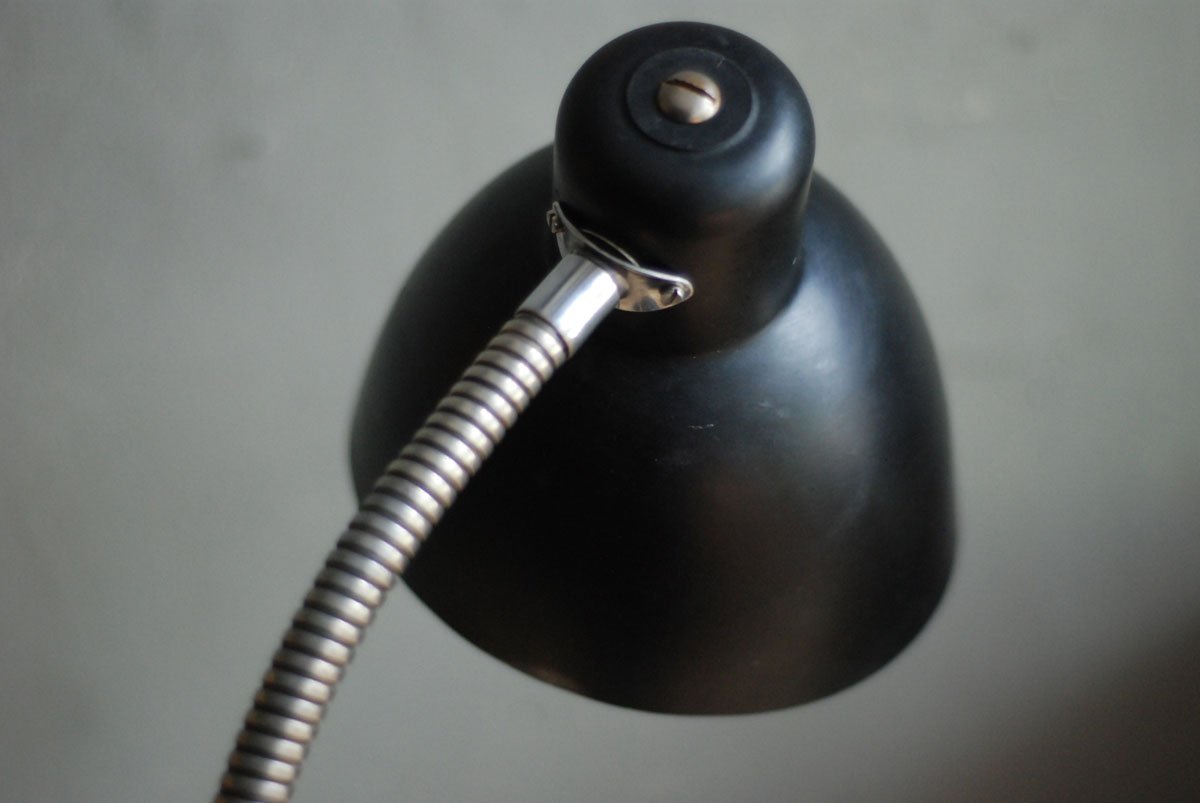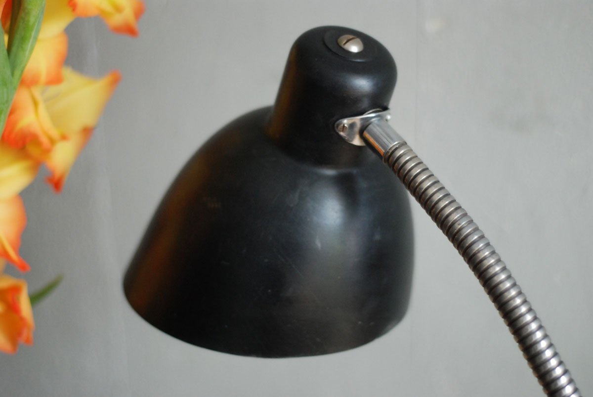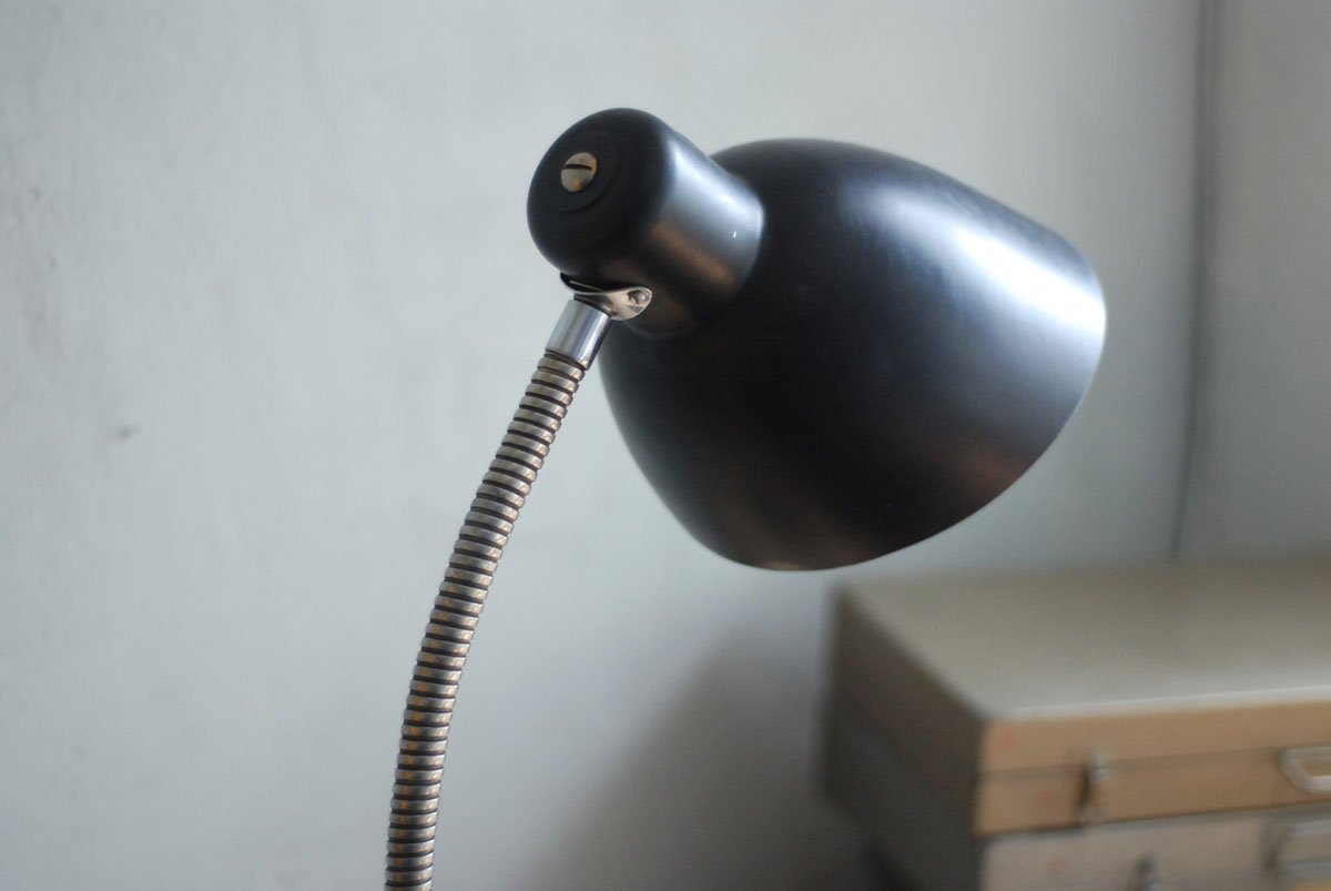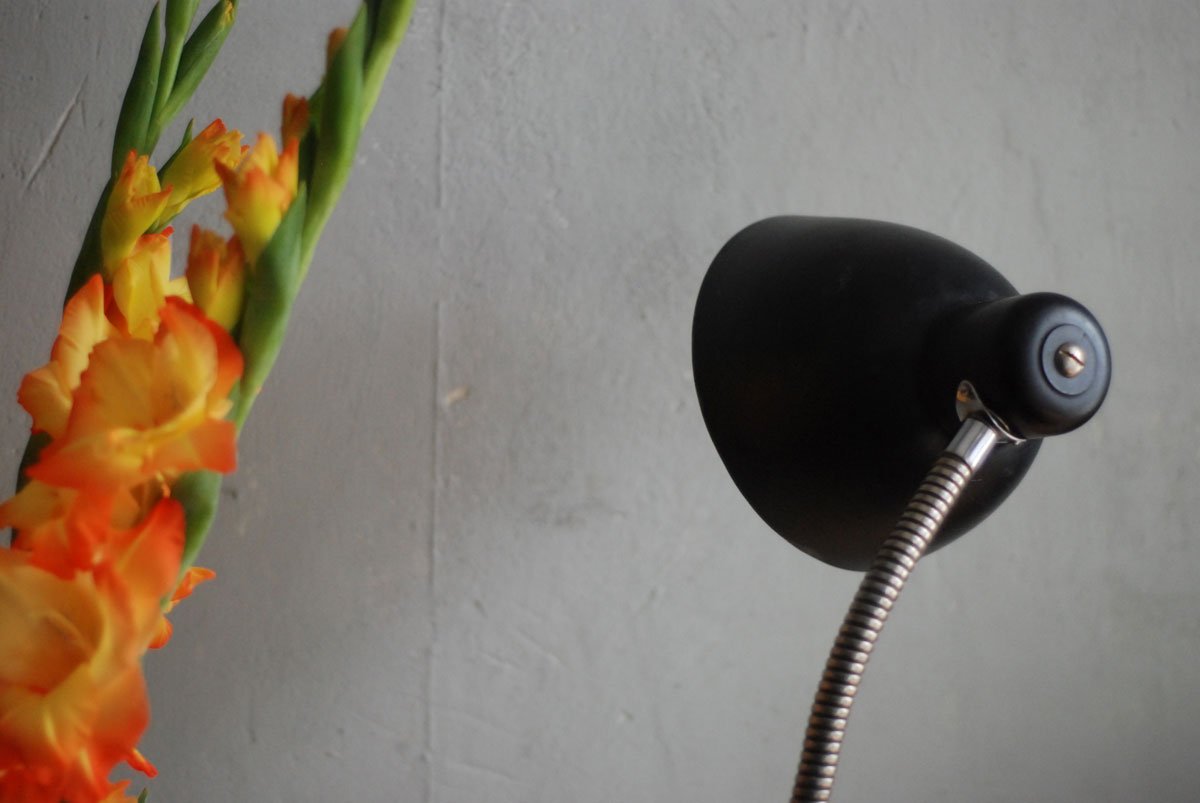 Schwarze Tischleuchte Nolta Lux mit Schwanenhals und Schirm aus Bakelit