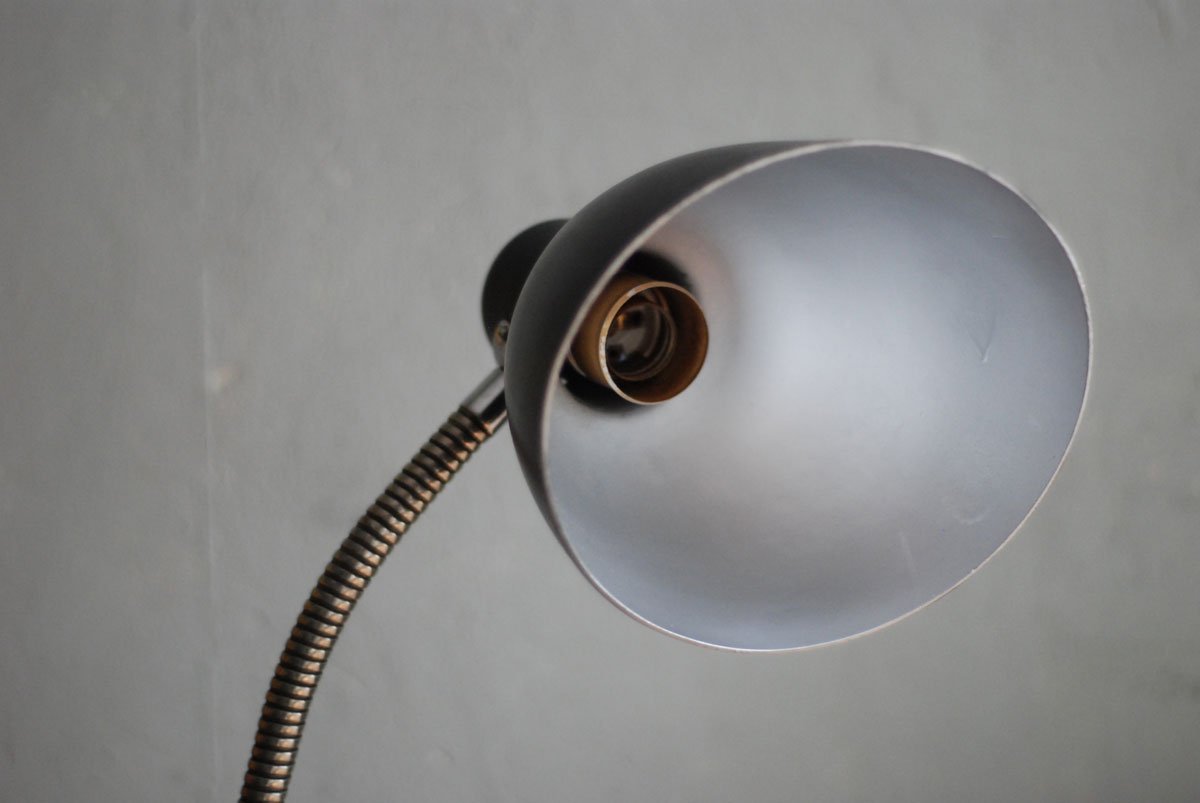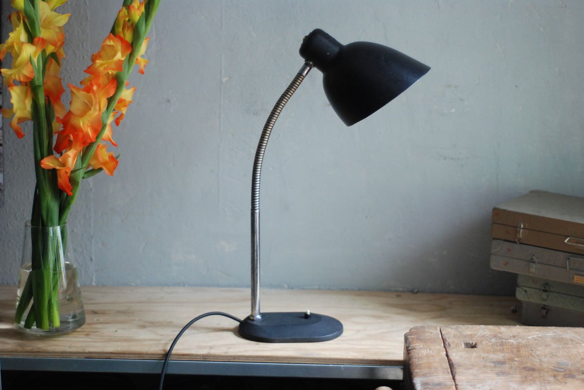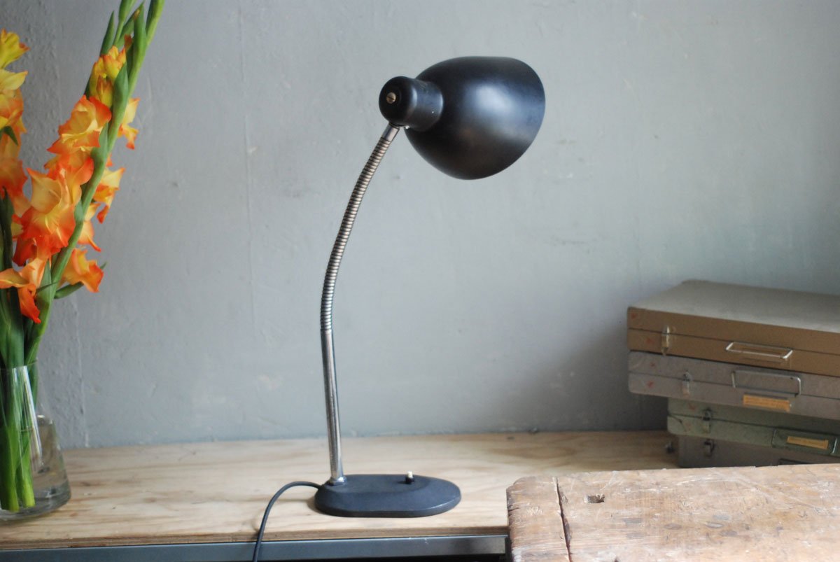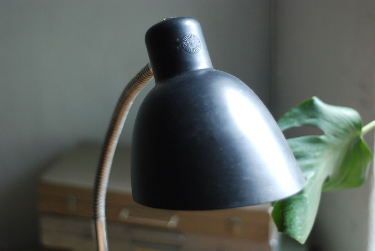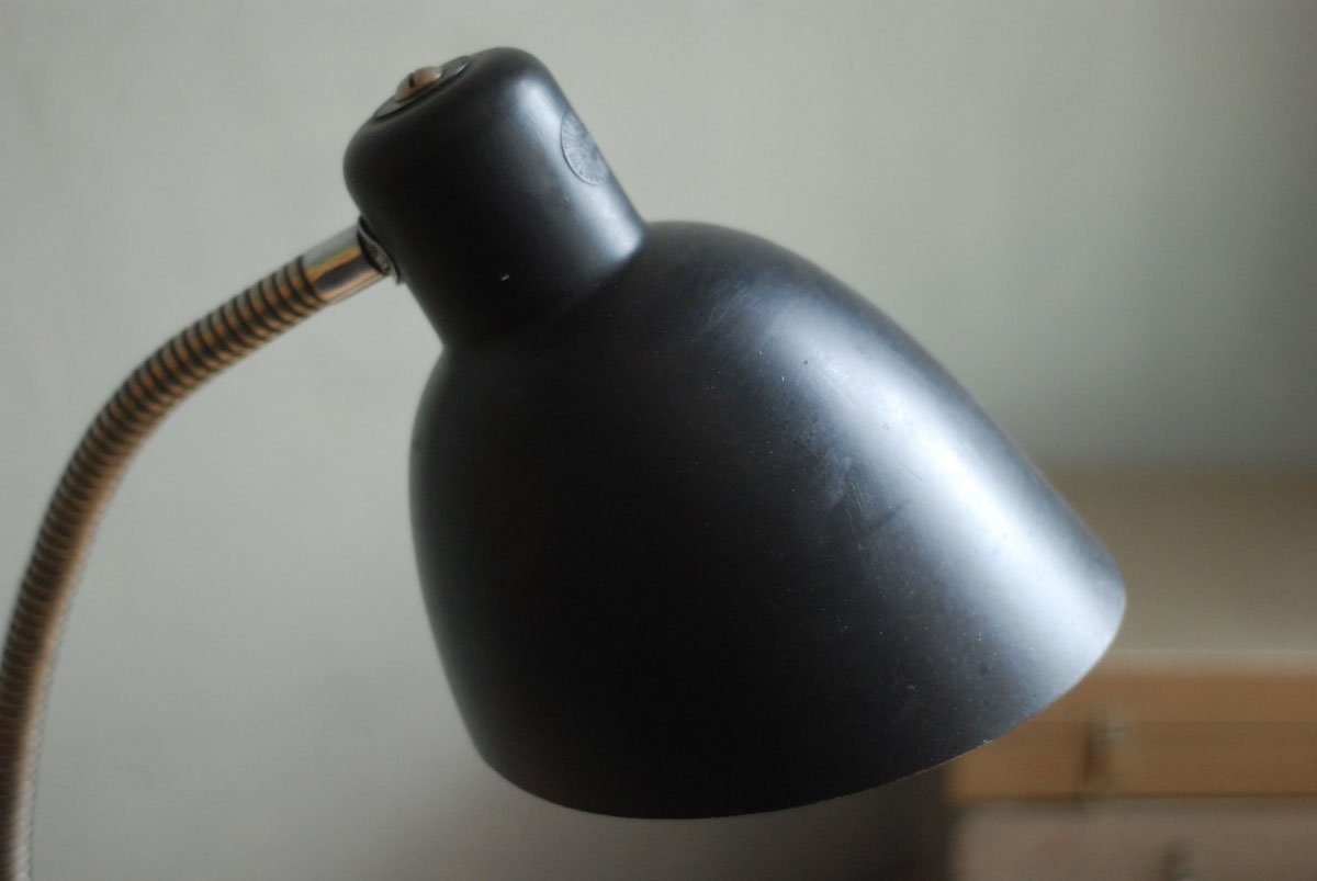 Schwarze Tischleuchte Nolta Lux mit Schwanenhals und Schirm aus Bakelit