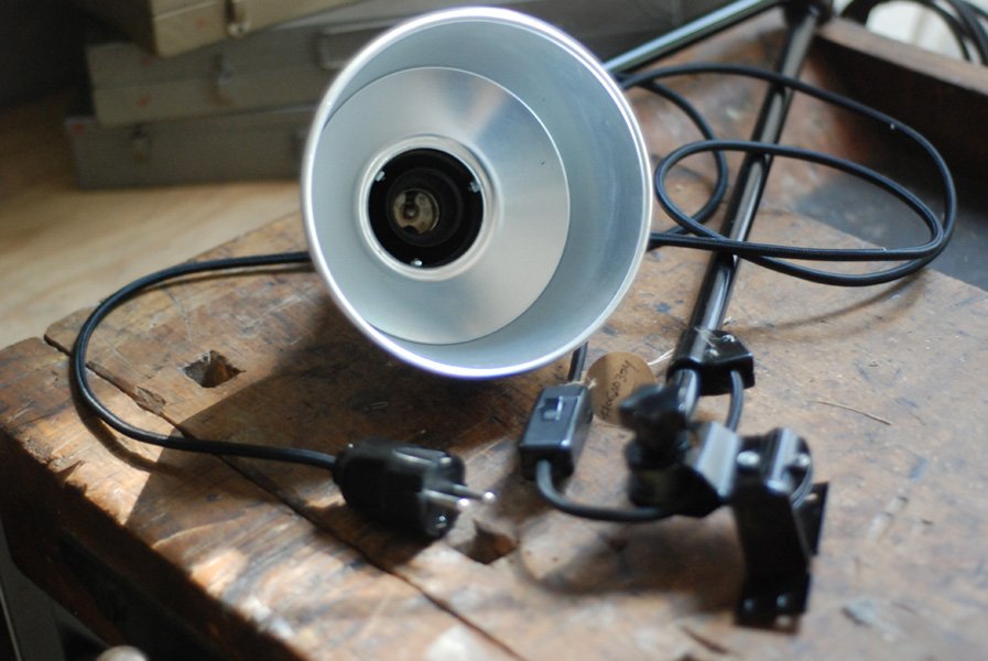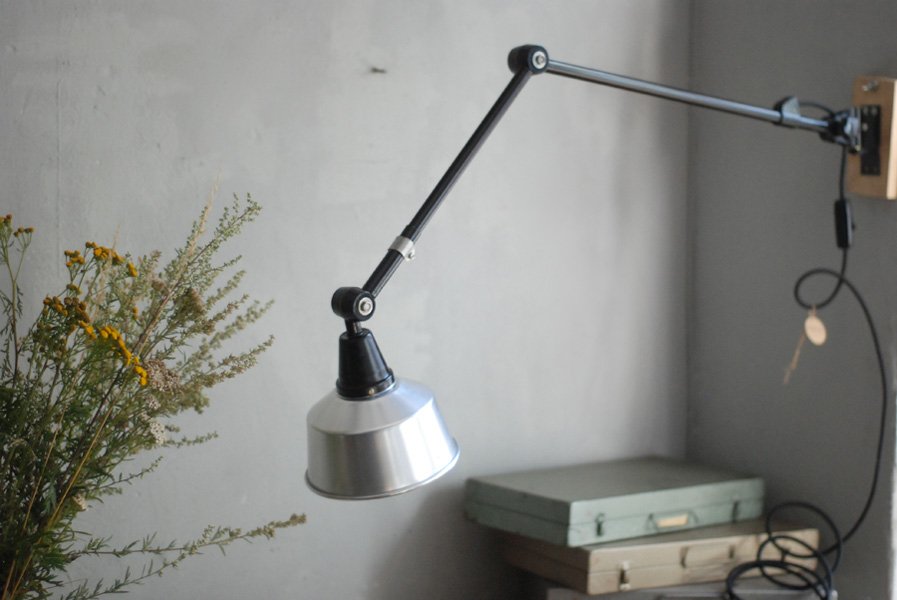 Der Entwurf dieser einzigartigen Gelenklampe aus der DDR Zeit stammt von Curt Fischer, der ab ca. 1920 an der Idee des „lenkbaren Lichtes“ gearbeitet hat. Noch vor den so bekannten Entwürfen von Christian Dell oder Marianne Brandt setzte Curt Fischer mit der allseitig beweglichen Arbeitsplatzleuchte die Idee des so genannten ‚lenkbaren Lichtes‘ um. Die Metallwerkstatt im Bauhaus in Weimar wurde mit Midgard-Leuchten erhellt und diente den Bauhaus-Studenten als Vorbild und ist später auch in die Wohnzimmereinrichtung von Ilse und Walter Gropius in deren Meisterhaus am Dessauer Bauhaus belegbar.