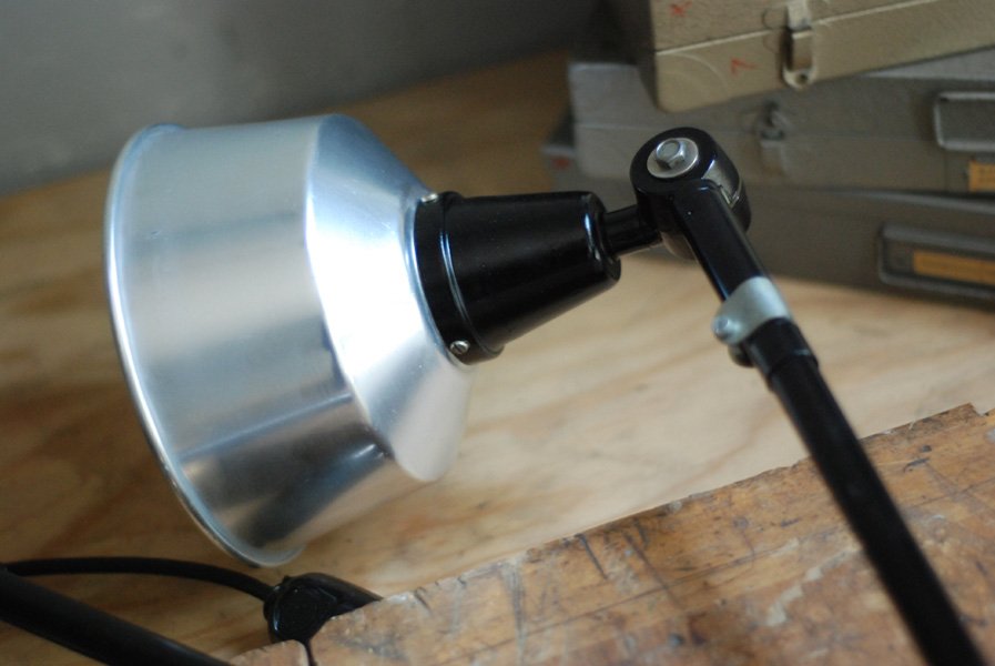 Grosse schwarze Gelenklampe Midgard DDRP mit Reflektor aus Aluminium.