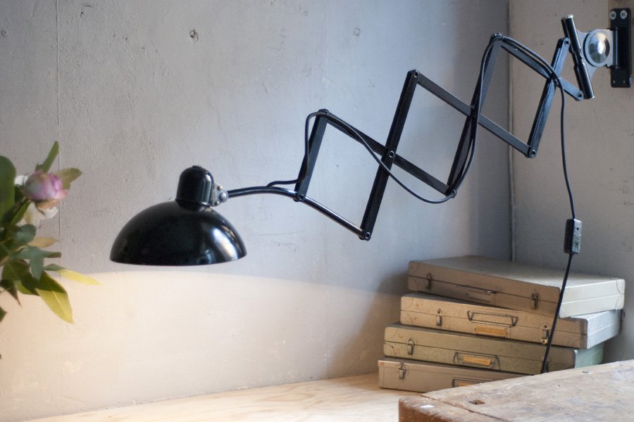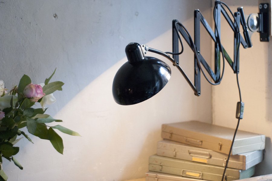 Grosse schwarze Scherenleuchte Kaiser Idell 6614 Super