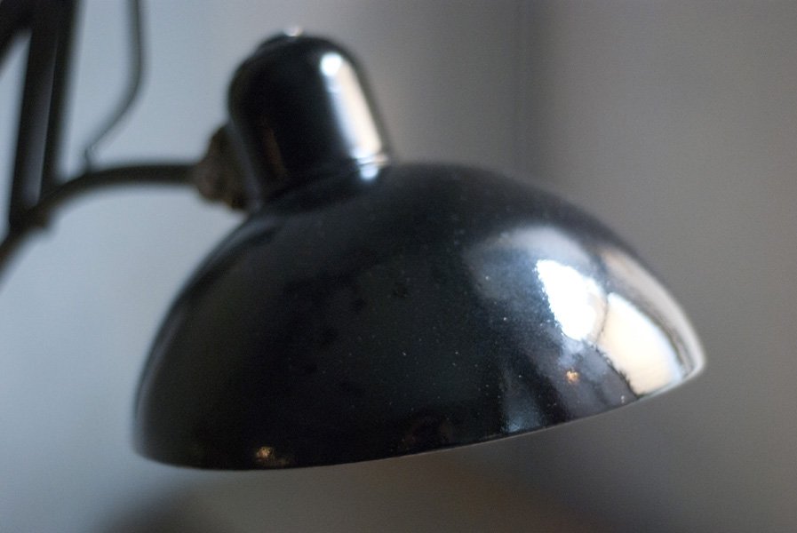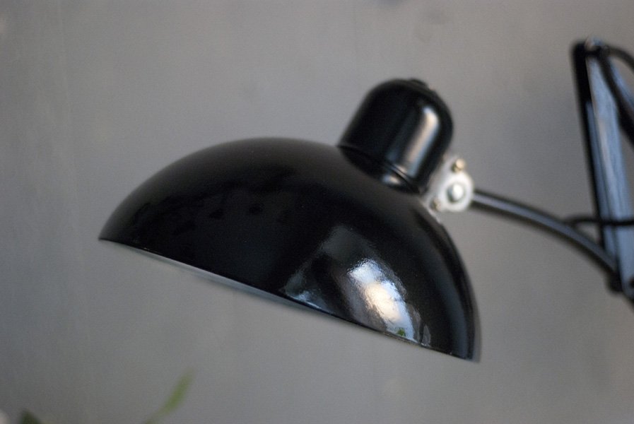 Diese Scherenlampe Kaiser Idell 6614 Super ist ein original Designerklassiker aus den 30er Jahren. Nach der kompletten Zerlegung wurden die Elemente der Leuchte sorgfältig gereinigt, entlackt, neu lackiert und neu aufgebaut.