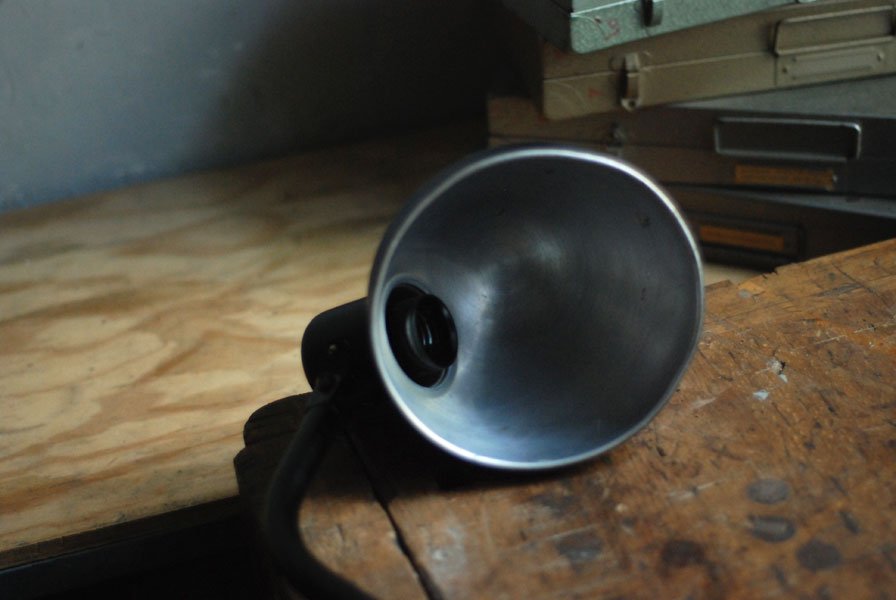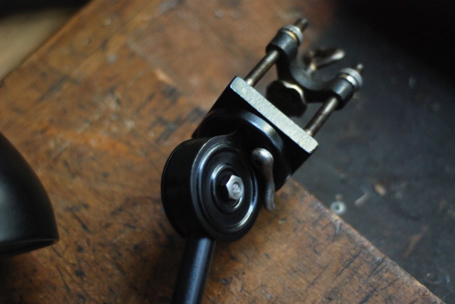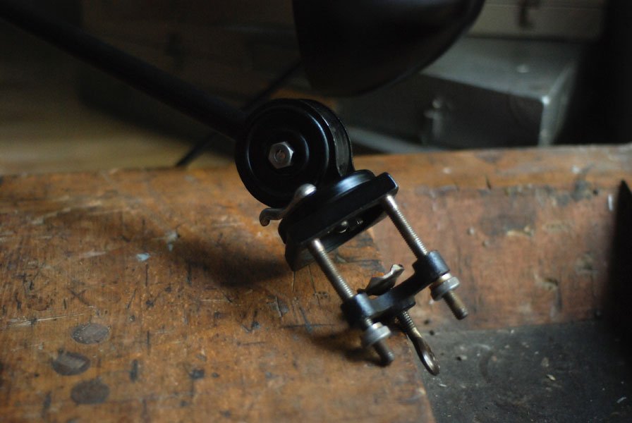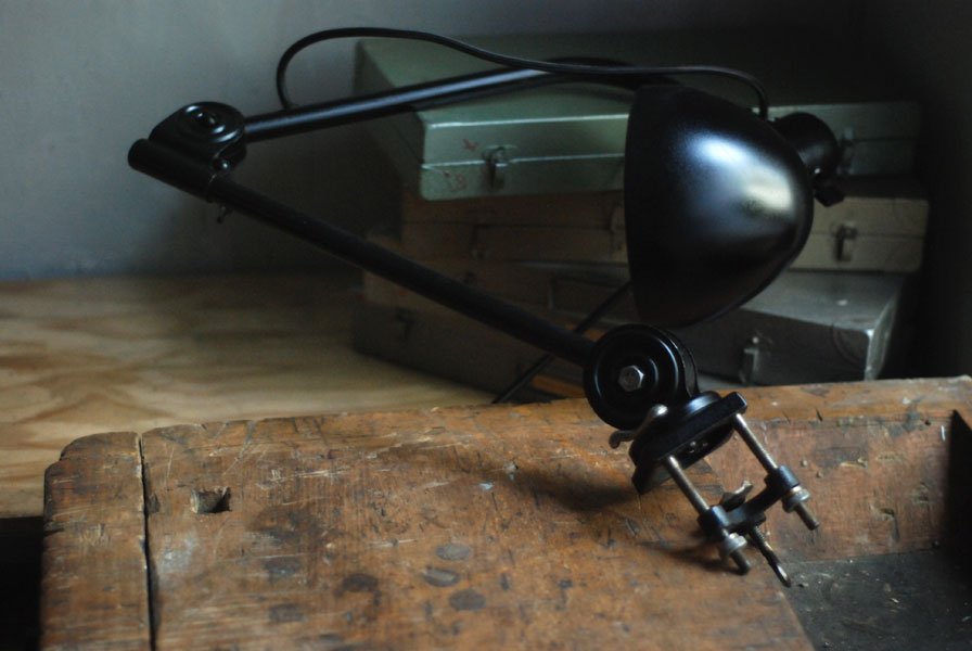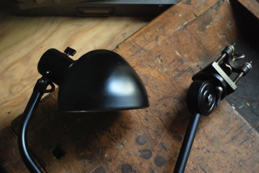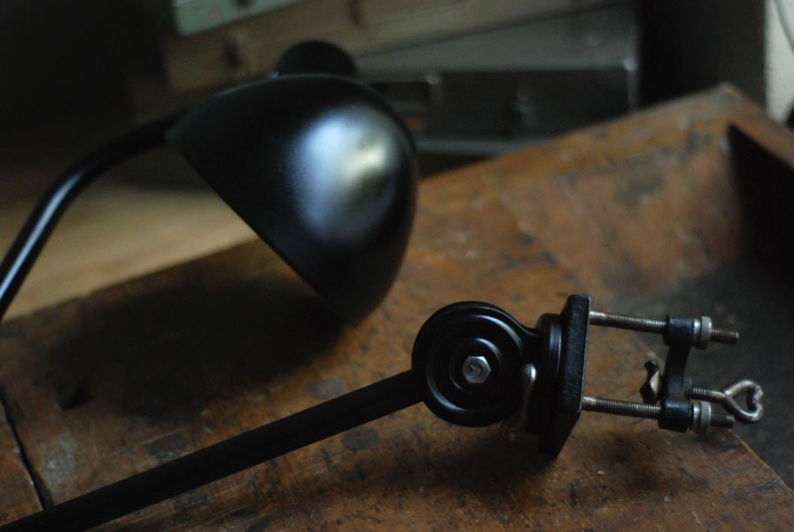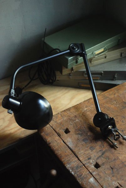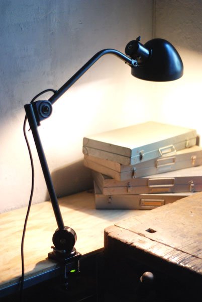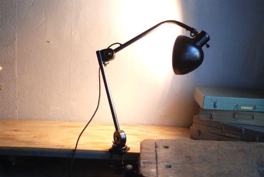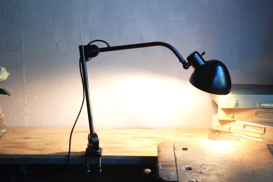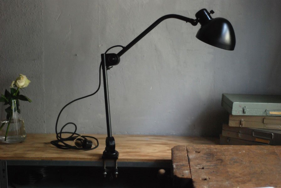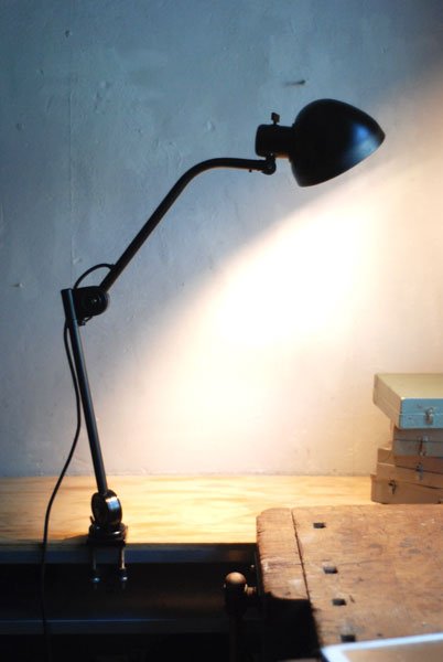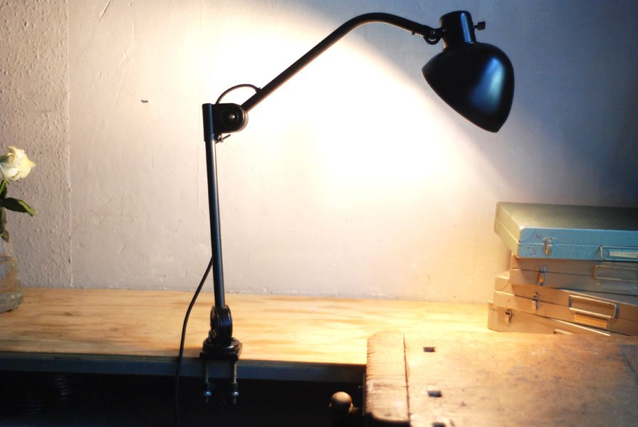 Seltene Arbeitlampe Hala mit Klemmfuss.
