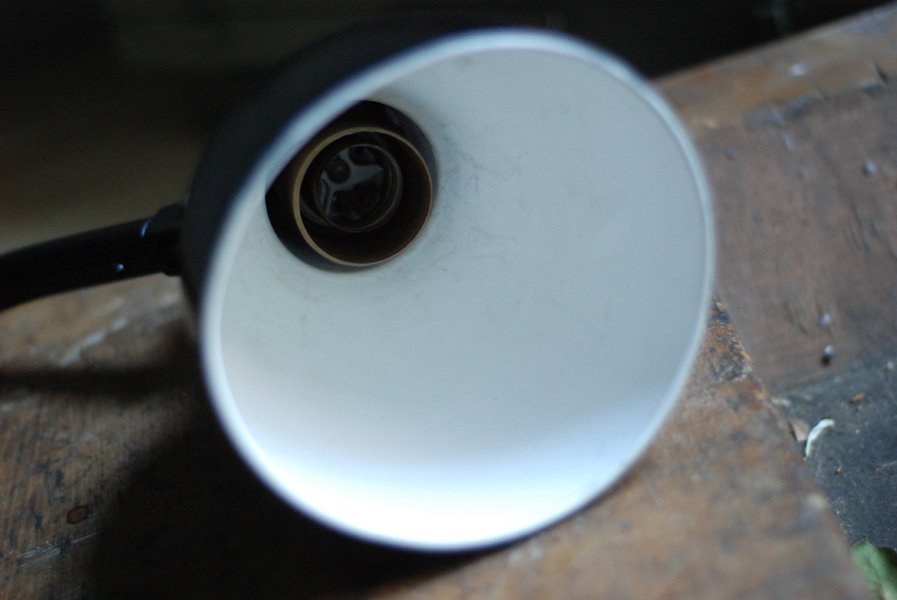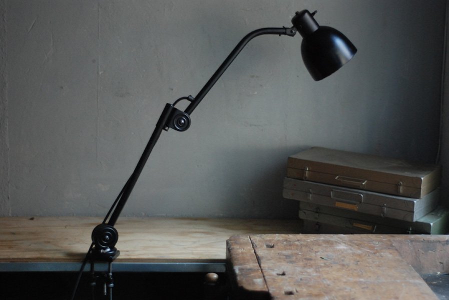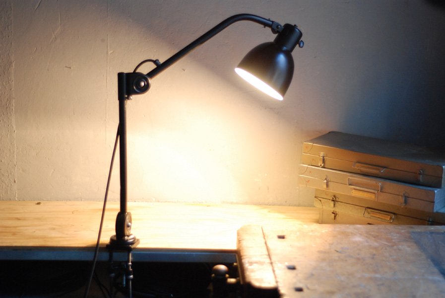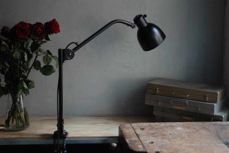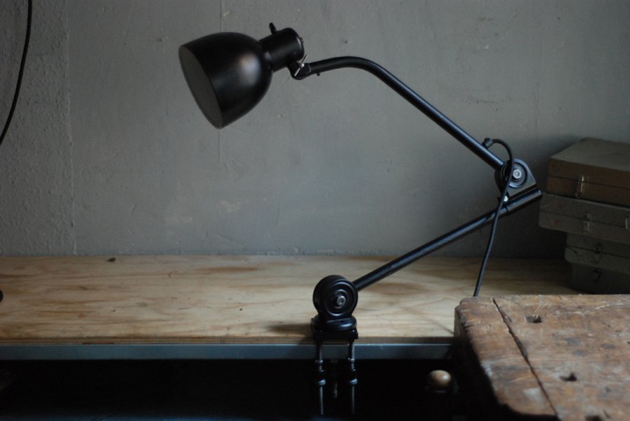 Seltene Arbeitlampe Hala mit Klemmfuss.