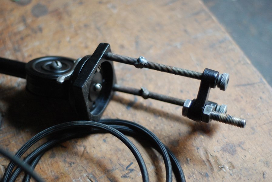 Die Elektrik wurde dreiadrig erneuert und generalüberholt. Es wurde ein schwarzes, stoffummanteltes Kabel verwendet. Die Leuchte wird mittels eines Drehschalters an der Fassung betätigt.