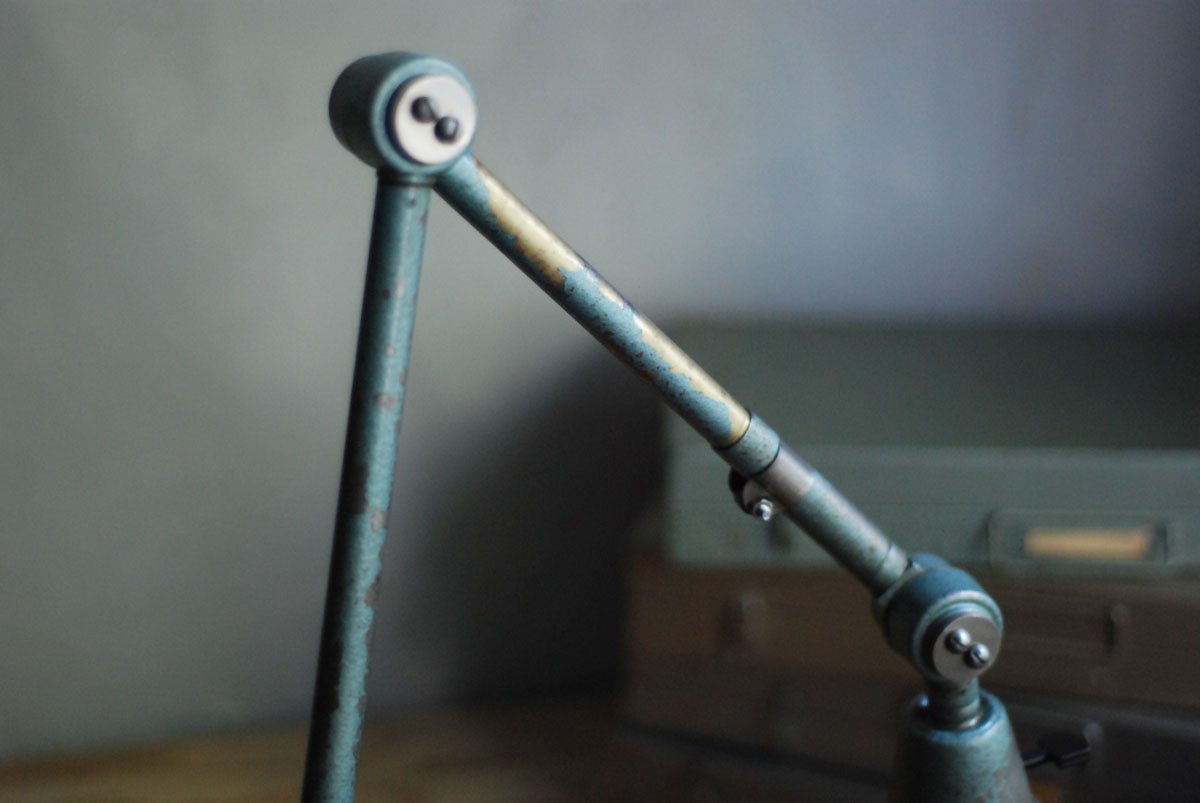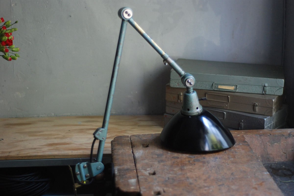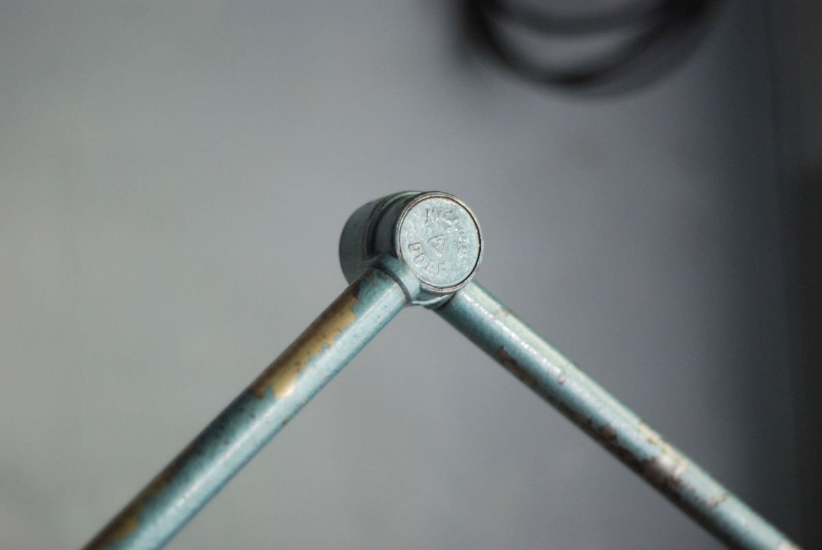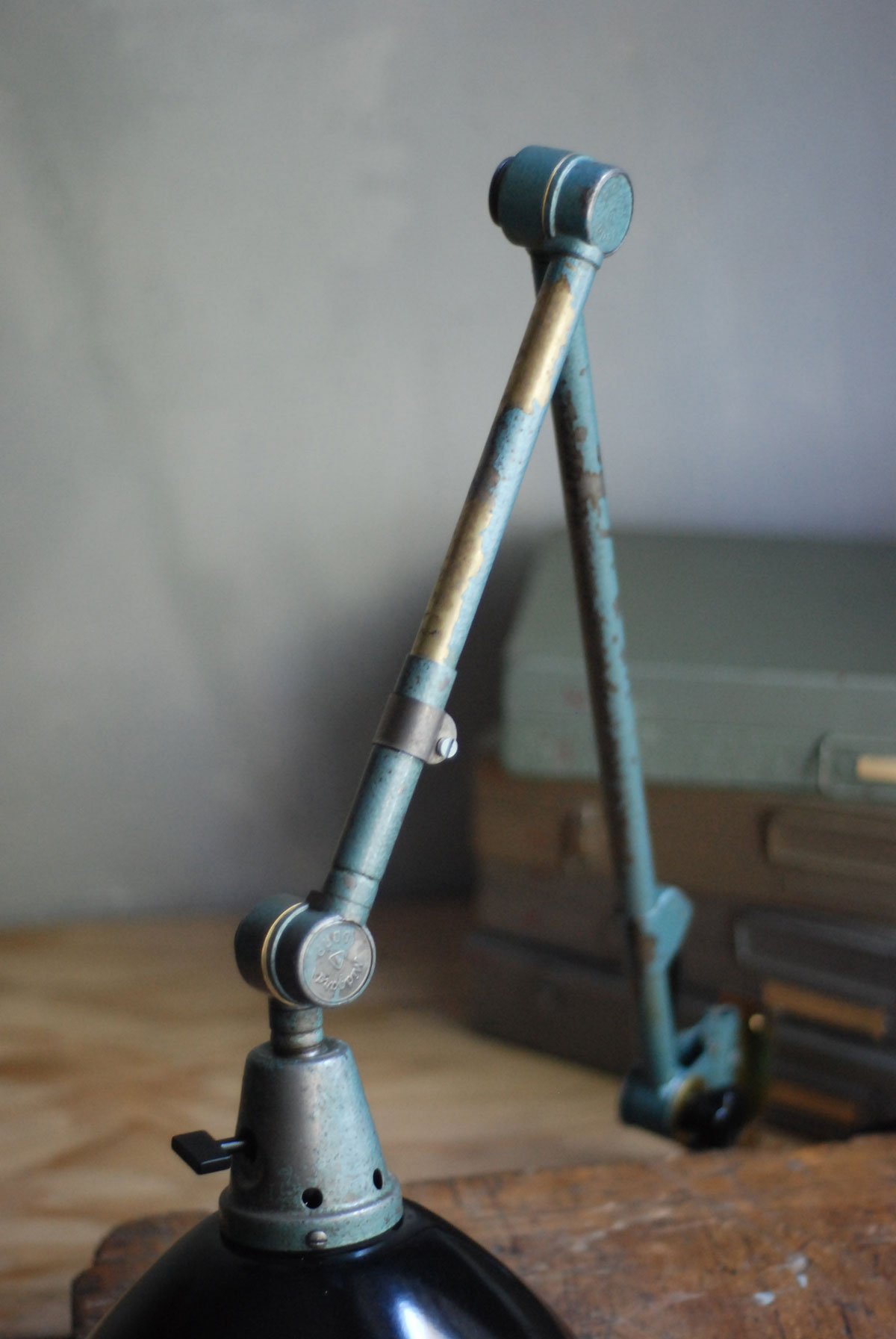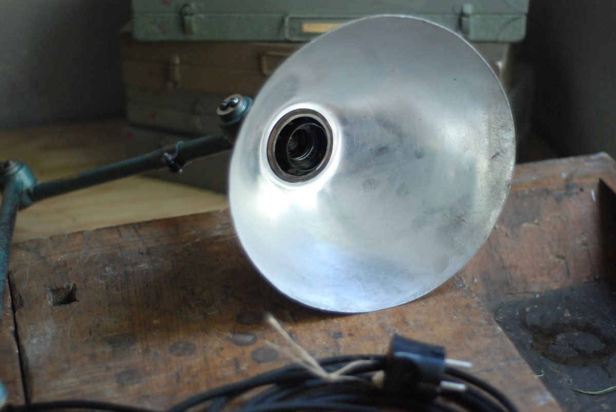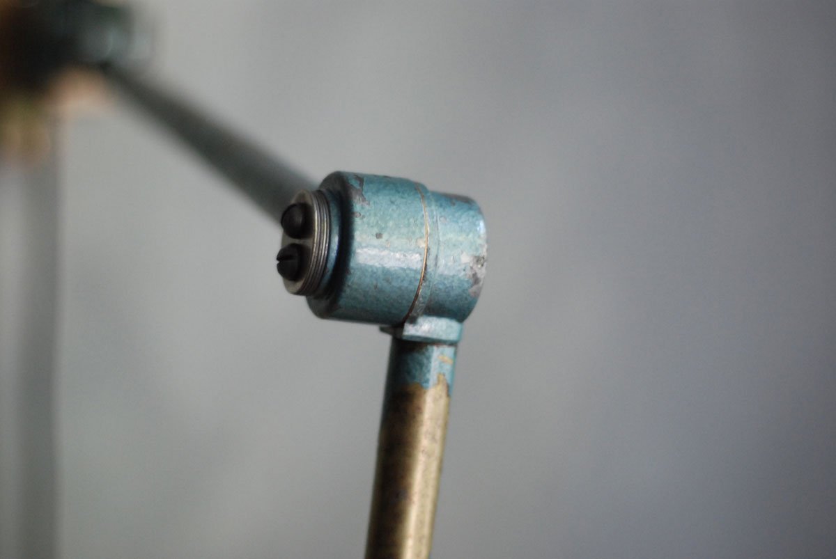 Nach der kompletten Zerlegung und sorgsamen Reinigung wurden die Elemente der Leuchte entrostet, mit Öl versiegelt und neu aufgebaut. Der schöne breite Schirm wurde in schwarz lackiert.