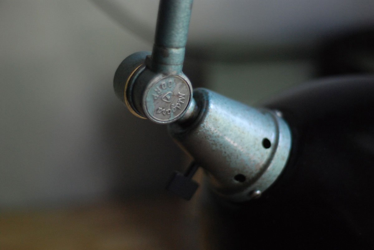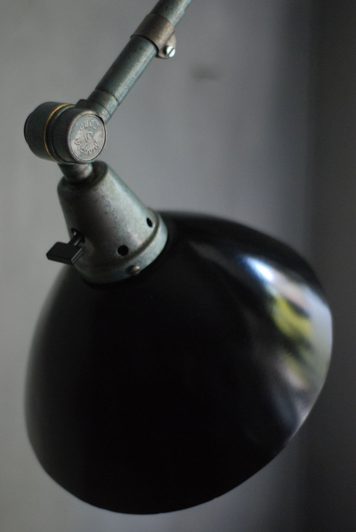 Geprägt ist die Leuchte an den Gelenken mit MIDGARD und DDRP. Die Technik der Leuchte funktioniert einwandfrei. Die Elektrik wurde dreiadrig erneuert und generalüberholt. Es wurde ein schwarzes, stoffummanteltes Kabel verwendet. Die Leuchte wird mittels eines Drehschalters in der Uhrzeigersinn an der Bakelitfassung betätigt.