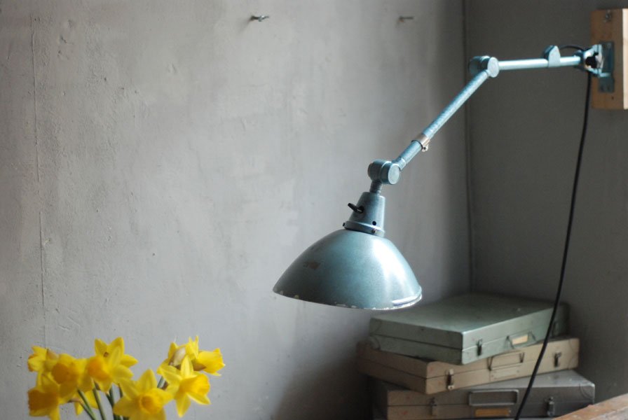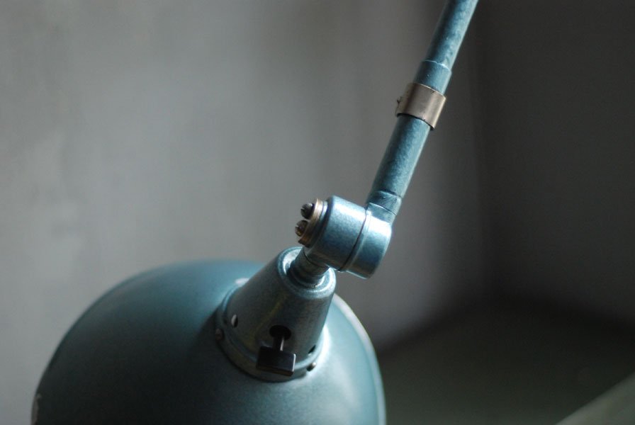 Die Leuchte wird mittels des Drehschalters aus Bakelit betätigt. Die Technik der Leuchte funktioniert einwandfrei. Die Gelenke sind leichtgängig.