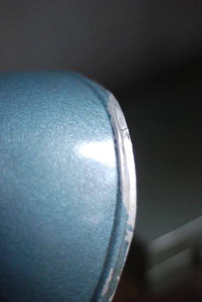 Die Lampe hat dem Alter entsprechend Lager- und Gebrauchsspuren, sie befindet sich aber in einem sehr guten Zustand. Der schöne breite Reflektor weist leichte Gebrauchsspuren sowie Lackabplatzer, u.a. am Rand.